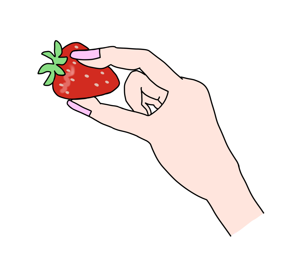 指でつまんだいちご