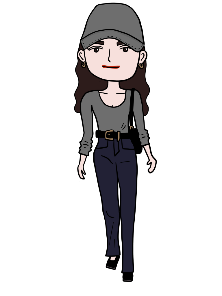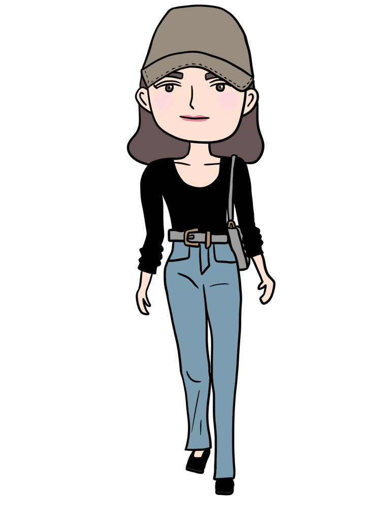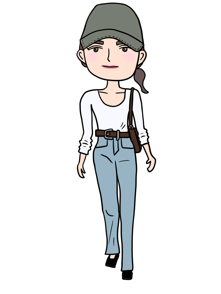 キャップをかぶってお出かけ中なのか、散歩中なのか…歩いている女性のイラストフリー素材です。