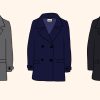 グレーのPコートを着た女性