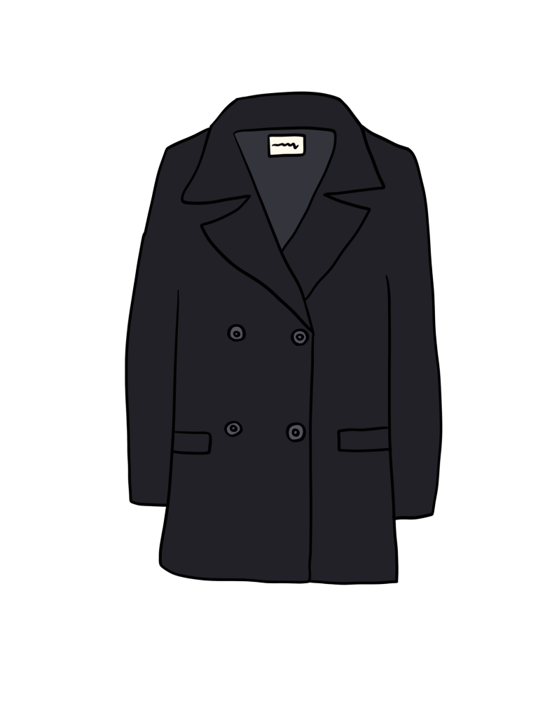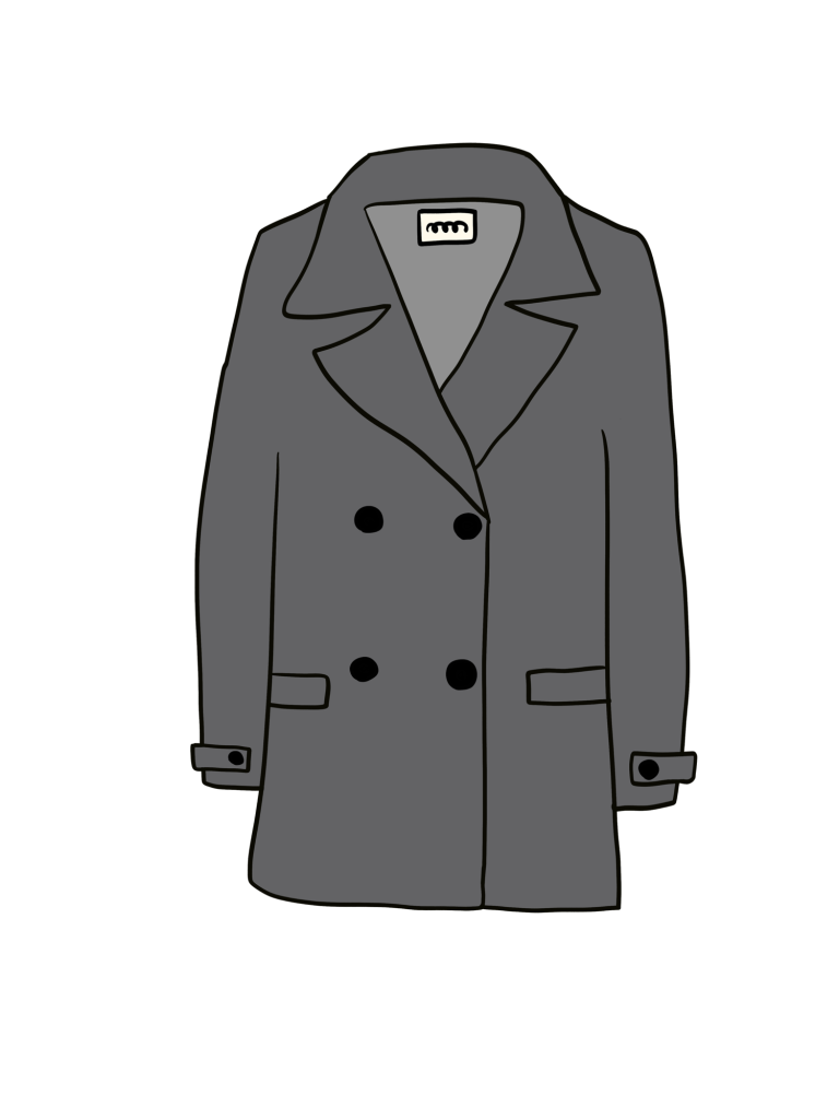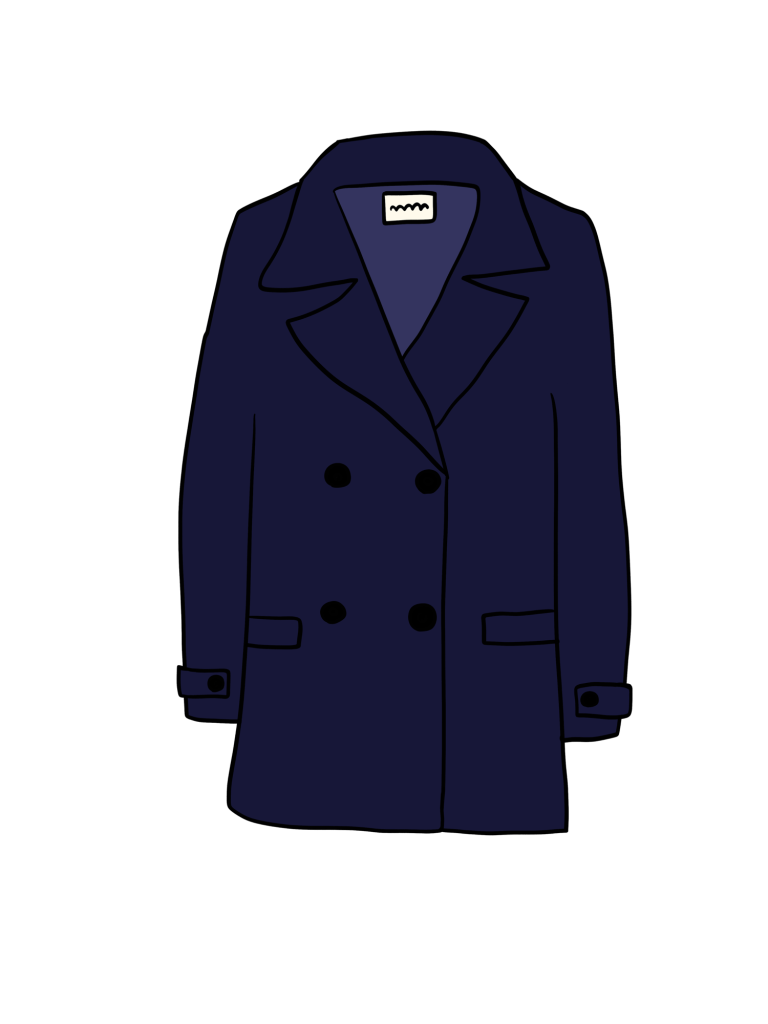 冬のおしゃれの必需品、Pコートのイラストフリー素材です。黒、グレー、ネイビーの3色展開です♡